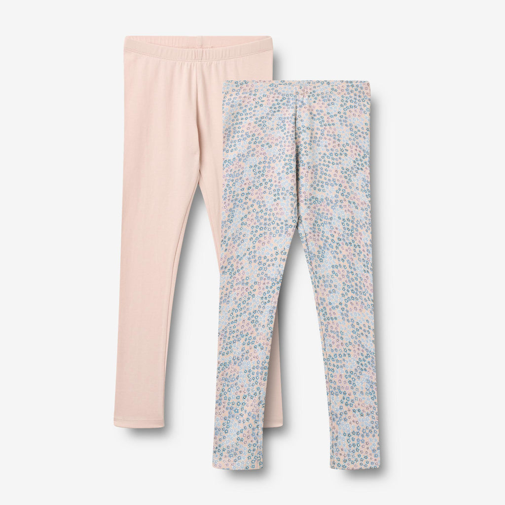 2-pack of jersey leggings in soft organic cotton for children.- Fitted- Elastic at the waist- One in solid colour - One in signature print Wheat's lovely and soft leggings are unisex and are a true essential in your child’s wardrobe. The leggings are fitted and has an elastic at the waist. They can easily be styled on their own with a sweatshirt or knit, or as an extra layer underneath one of our dresses and trousers.
