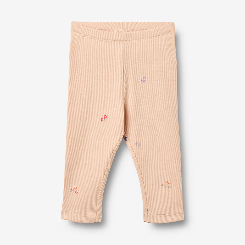 2-pack of jersey leggings in soft organic cotton for babies.- Fitted- Elastic at the waist- One in a solid colour - One with hand drawn signature printThese lovely and soft leggings are unisex and are a true essential in your baby’s wardrobe. The leggings are fitted and has an elastic at the waist. They can easily be styled on their own with a body, sweatshirt and knit, or as an extra layer underneath one of our dresses and/or trousers.