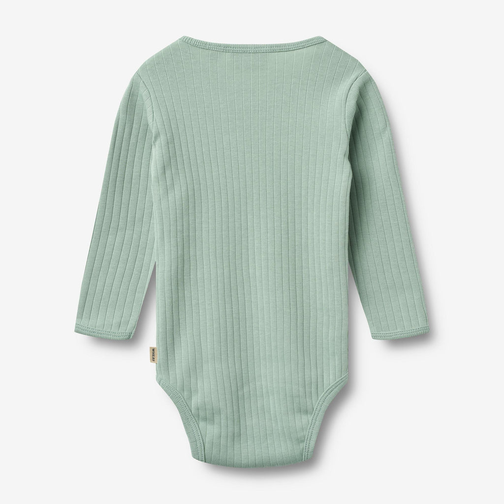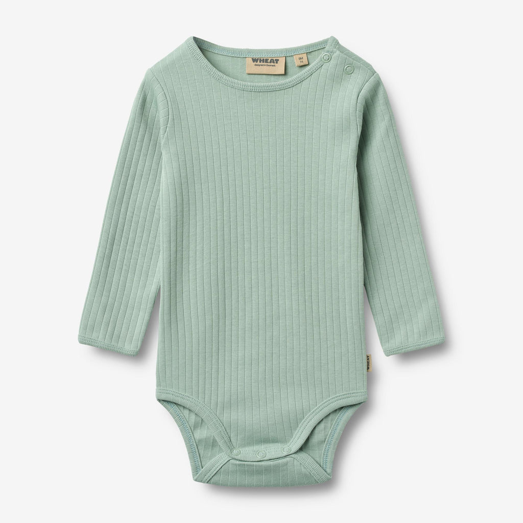 Long-sleeved rib body in soft organic cotton for babies.- Slim fit- Press buttons at the shoulder and crotch- Ribbed structure- Solid colorThis body is designed for unisex and a true essential in your baby’s wardrobe, as it can be worn on its own or as an extra layer underneath everyday clothing. The bodies either have press buttons at the shoulder or buttons at the neck for better comfort, when you are dressing your baby.