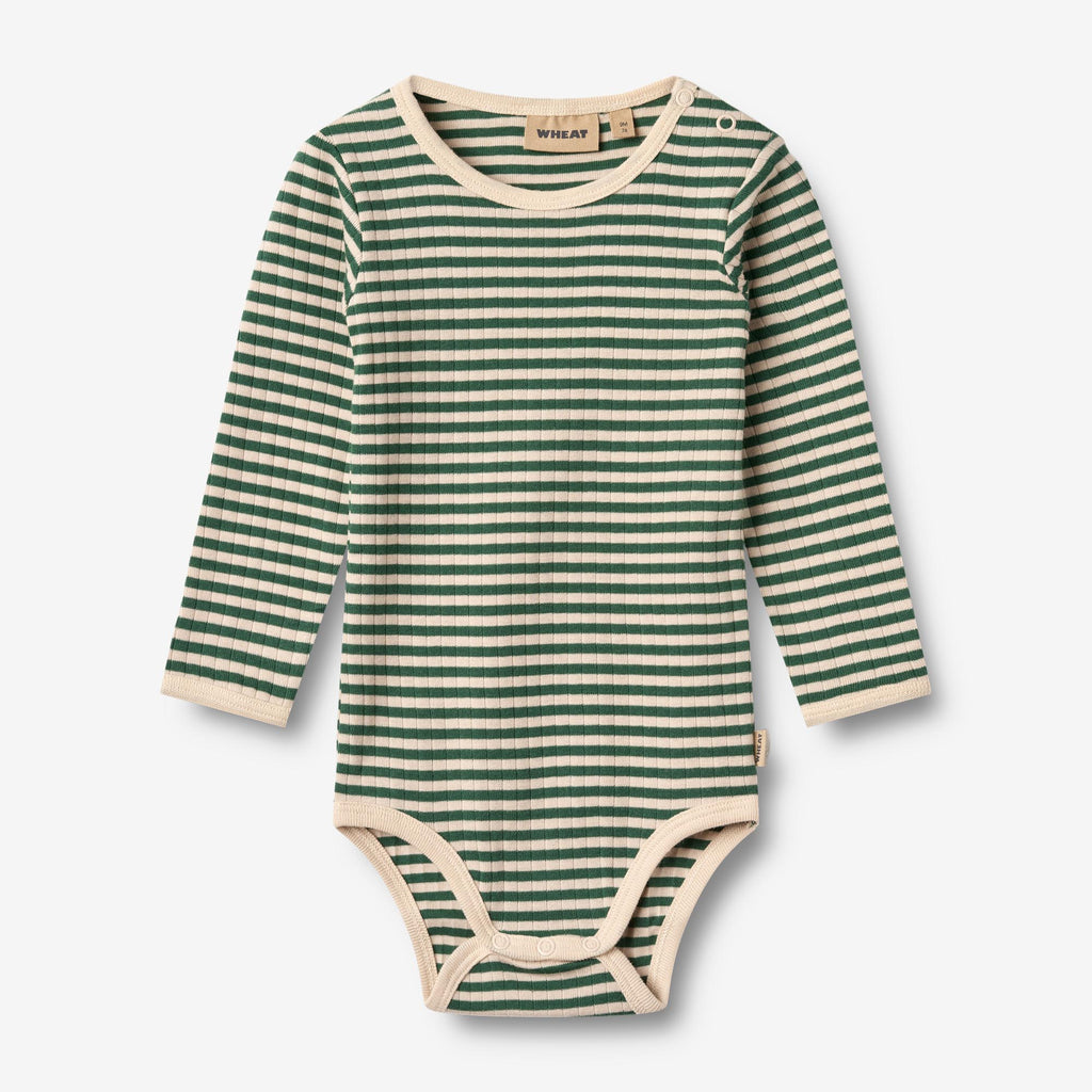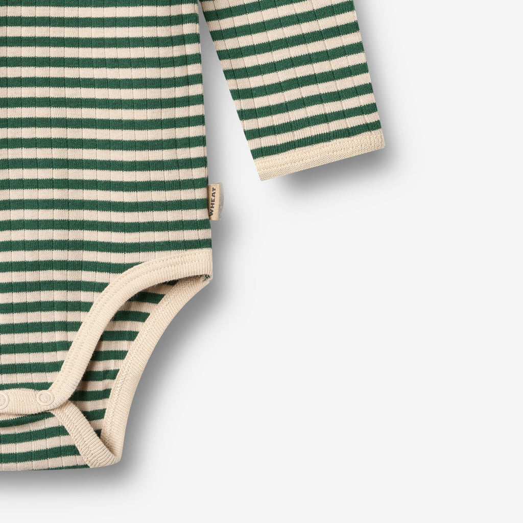 Long-sleeved body with stripes in soft organic cotton for babies.- Press buttons at the shoulder and crotch- Rib at the neckline, sleeve and bottom hem in contrast colour- StripedThis body is unisex and a true essential in your baby’s wardrobe, as it can be worn on its own or as an extra layer underneath everyday clothing. The bodies either have press buttons at the shoulder or buttons at the neck for better comfort, when you are dressing your baby.