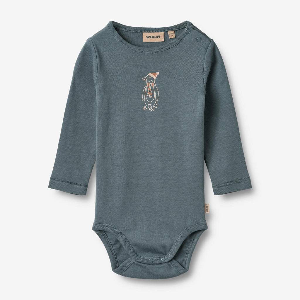 Cute long-sleeved body with front print in soft organic cotton for babies.