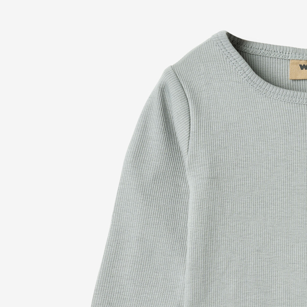 Long-sleeved Body Spencer in soft organic cotton jersey for your baby.- Rib construction- Plain fit- Edgeband main fabric at neckline and crotch opening- Top stitches - Ring pressbutton closure at left shoulder for easier accessThe Body Spencer is crafted from a gentle organic cotton and elastane blend, making it ideal as a base layer or worn on its own during milder weather. The rib provides a comfortable stretch, allowing freedom of movement for your child.The practical ring pressbutton closure ensures easy dressing and diaper changes.
