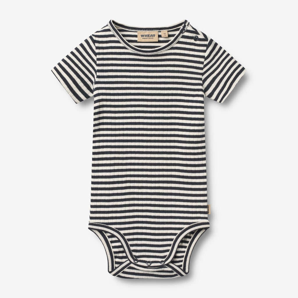 Short-sleeved body with stripes in soft organic cotton for babies.- Regular/slim fit- Short sleeves- Neckline in contrast color- Press buttons at the shoulder and crotch- StripedSoft and breathable, this organic cotton body is a must-have in your baby’s wardrobe. Designed for comfort and ease, it features practical press buttons for quick diaper changes and a snug fit that works perfectly on its own or as a layering piece.
