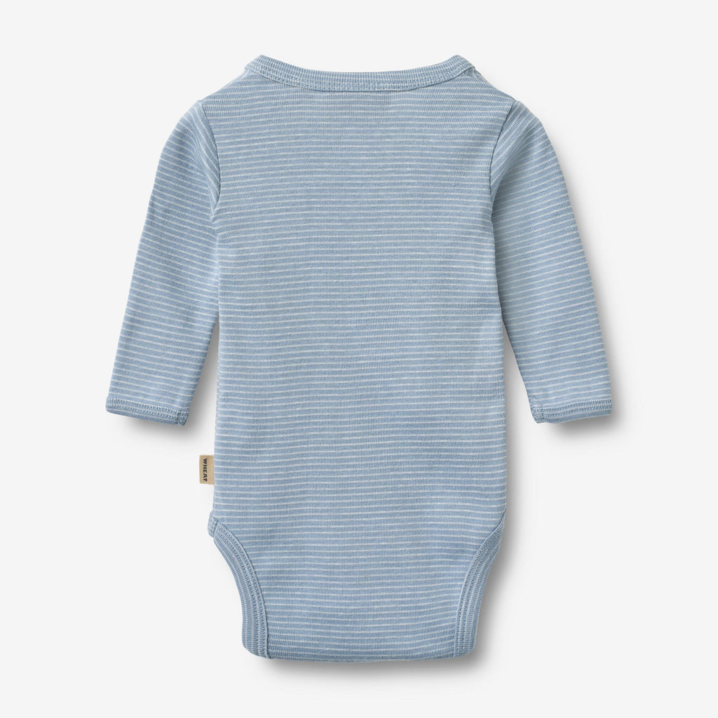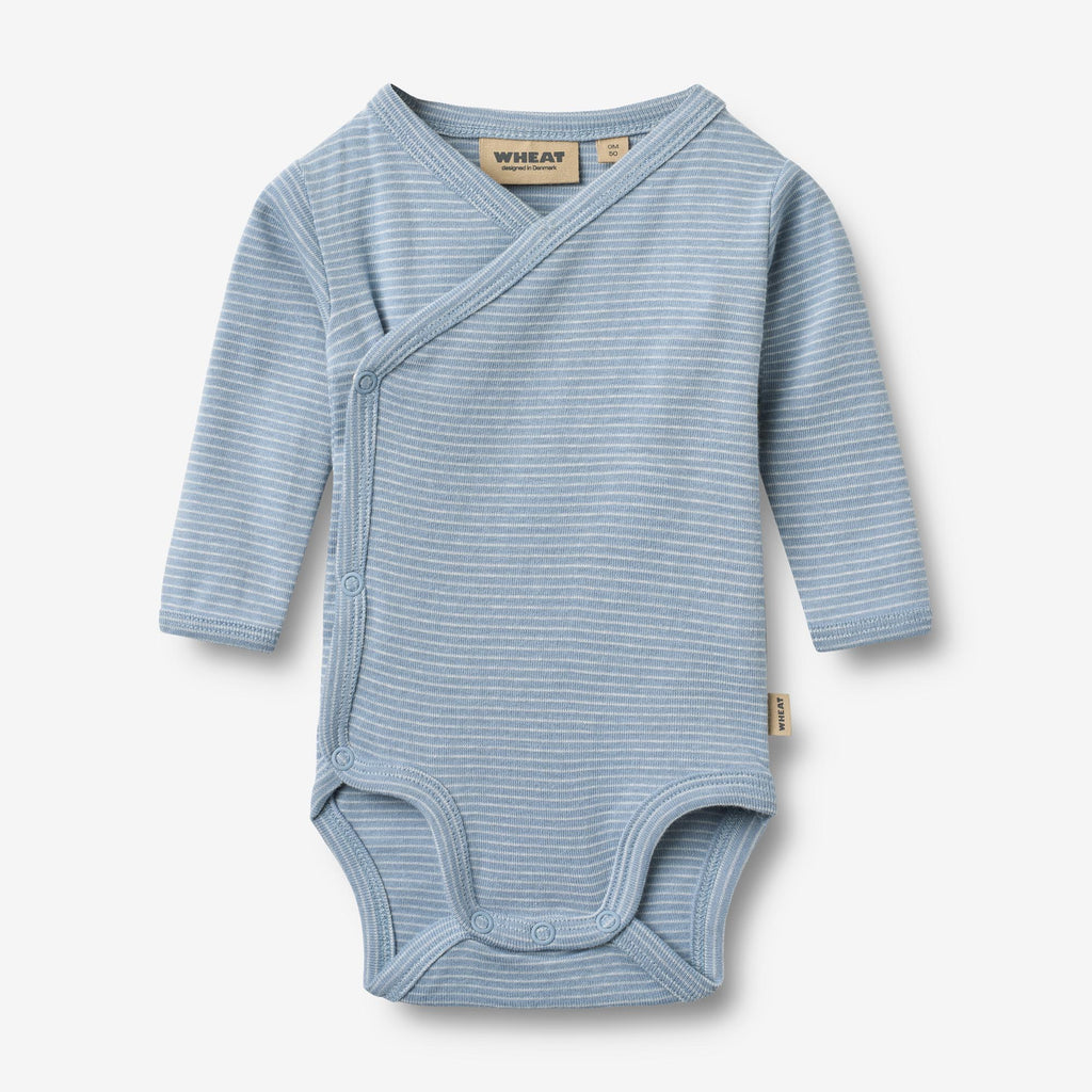 Long-sleeved wraparound body is a soft and comfortable essential in your baby’s wardrobe. - Press buttons at the sides and crotch- Crossed opening for easier access- StripedMade from organic cotton with a ribbed structure, it is both stylish and practical. The wraparound design features press buttons at the sides and crotch, making it easy to dress and change your baby. Perfect for everyday wear, it can be worn on its own or as an extra layer for added warmth.