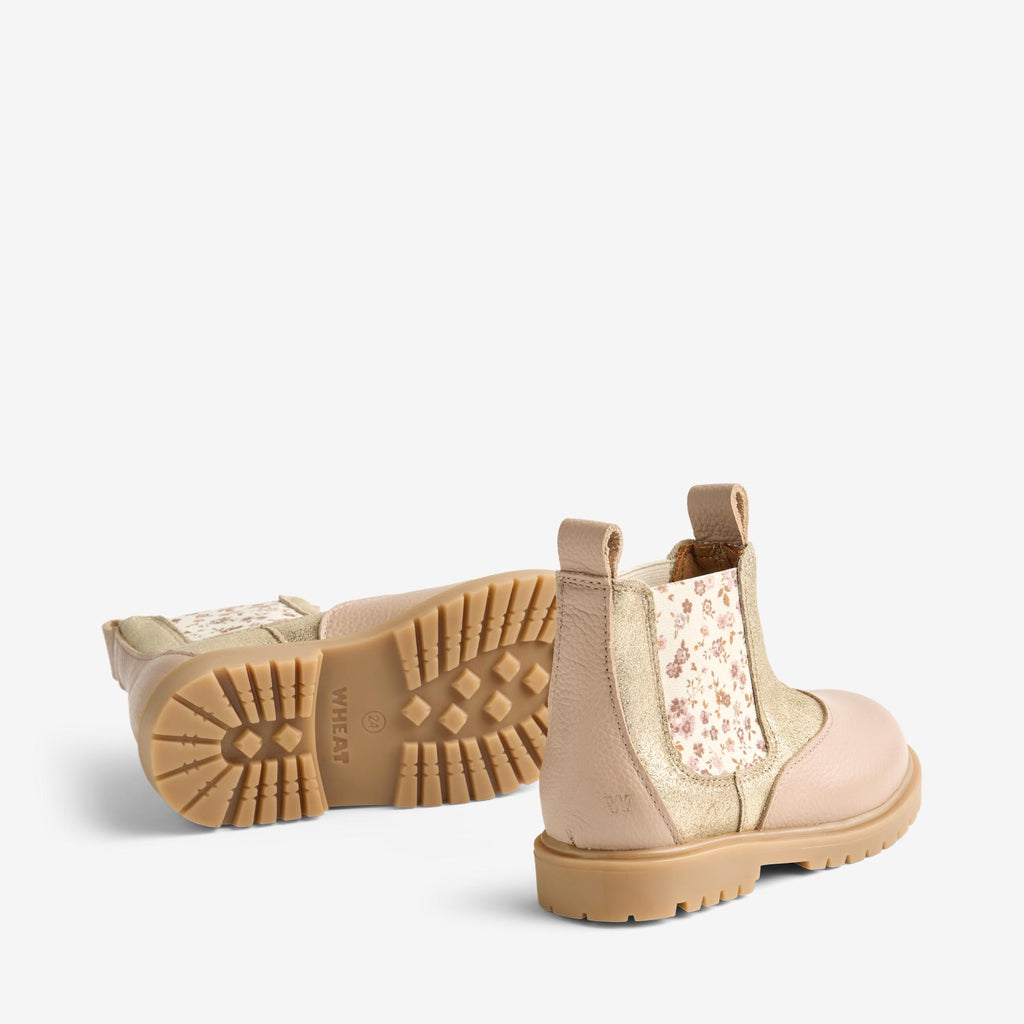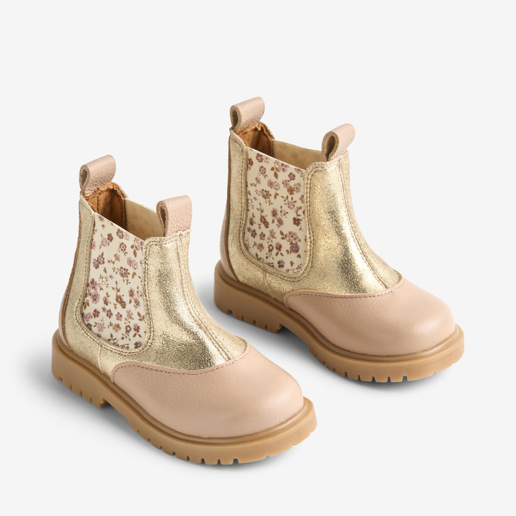 Glitter Chelsea boot made with a mix of patent and leather details for children. - Wide printed elastics at the sides - LWG certified leather- Chrome and metal free leather lining- Printed elastics- Recycled TR rubber sole- Patent detailsThe boots have a classic Chelsea design with a wide piece of printed elastic on each side of the shoe, which makes it easy for your child to put them on. The boots are made in leather from LWG tanneries. The durable material offers great comfort for your child. The shoe has a chrome and metal free tanned leather lining, as well as removable insoles made of latex and covered with the same leather. Latex is a natural product that is breathable and flexible with a trampoline effect for comfortable steps. The boots have recycled TR rubber outsoles with great traction and are designed as a year-round shoe.It is normal in size with a firm grip on your child's foot.Recommended allowance for growth: 1-1,5 cmInner measurementSize 24 = 15,7 cmSize 25 = 16,3 cmSize 26 = 17,1 cmSize 27 = 17,7 cmSize 28 = 18,4 cmSize 29 = 19,0 cmSize 30 = 19,4 cmSize 31 = 20,3 cmSize 32 = 21,0 cmSize 33 = 21,5 cmSize 34 = 22,2 cmSize 35 = 22,8 cm