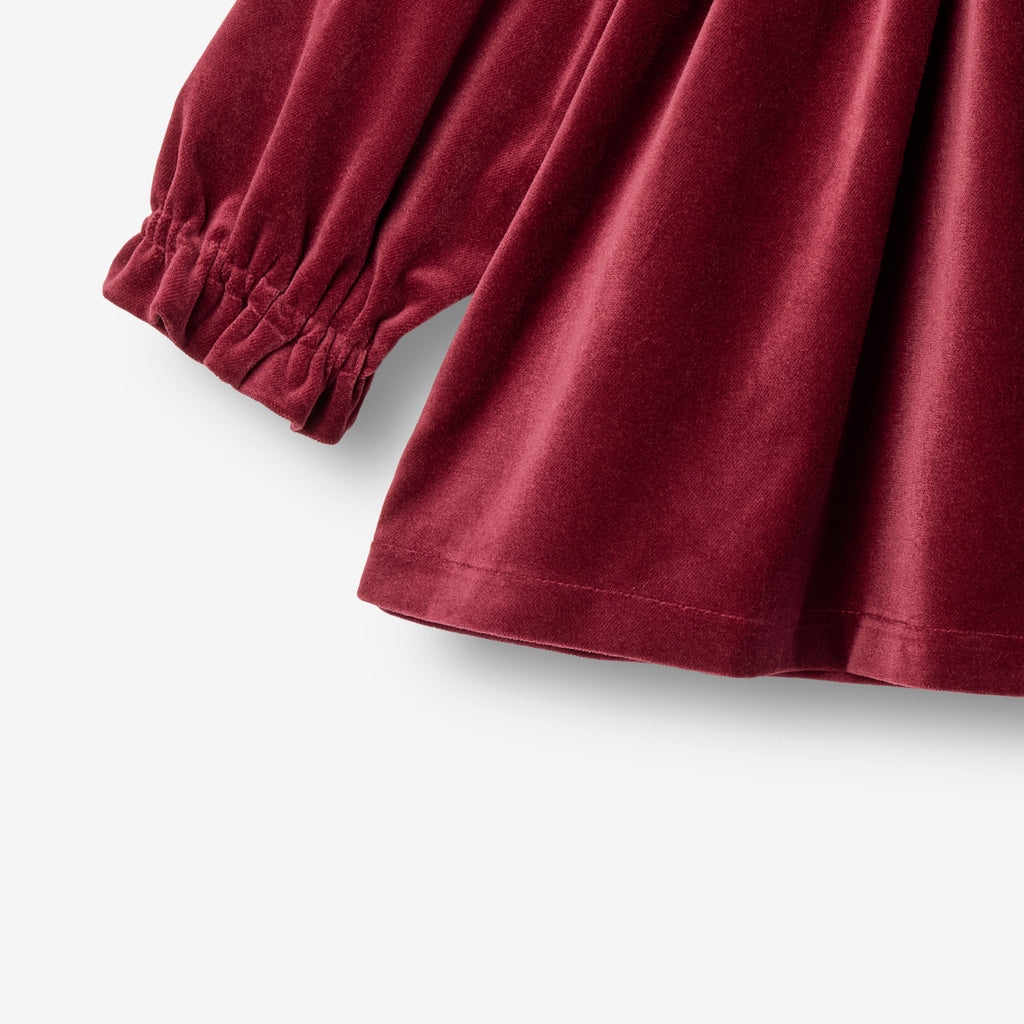 Long-sleeved dress in soft organic cotton.- Loose fit- Length: above knees- Cutline at the chest with gatherings below- Button closure at the backWheat's sweet dresses have a loose fit, which make them easy and comfortable for your child to wear. The dress has a flattering cutline with gatherings, which gives the dress some lovely volume. It has button closure at the back to make it easier for your child to get dressed. The dress is easy to style with leggings and a knit on the colder days.