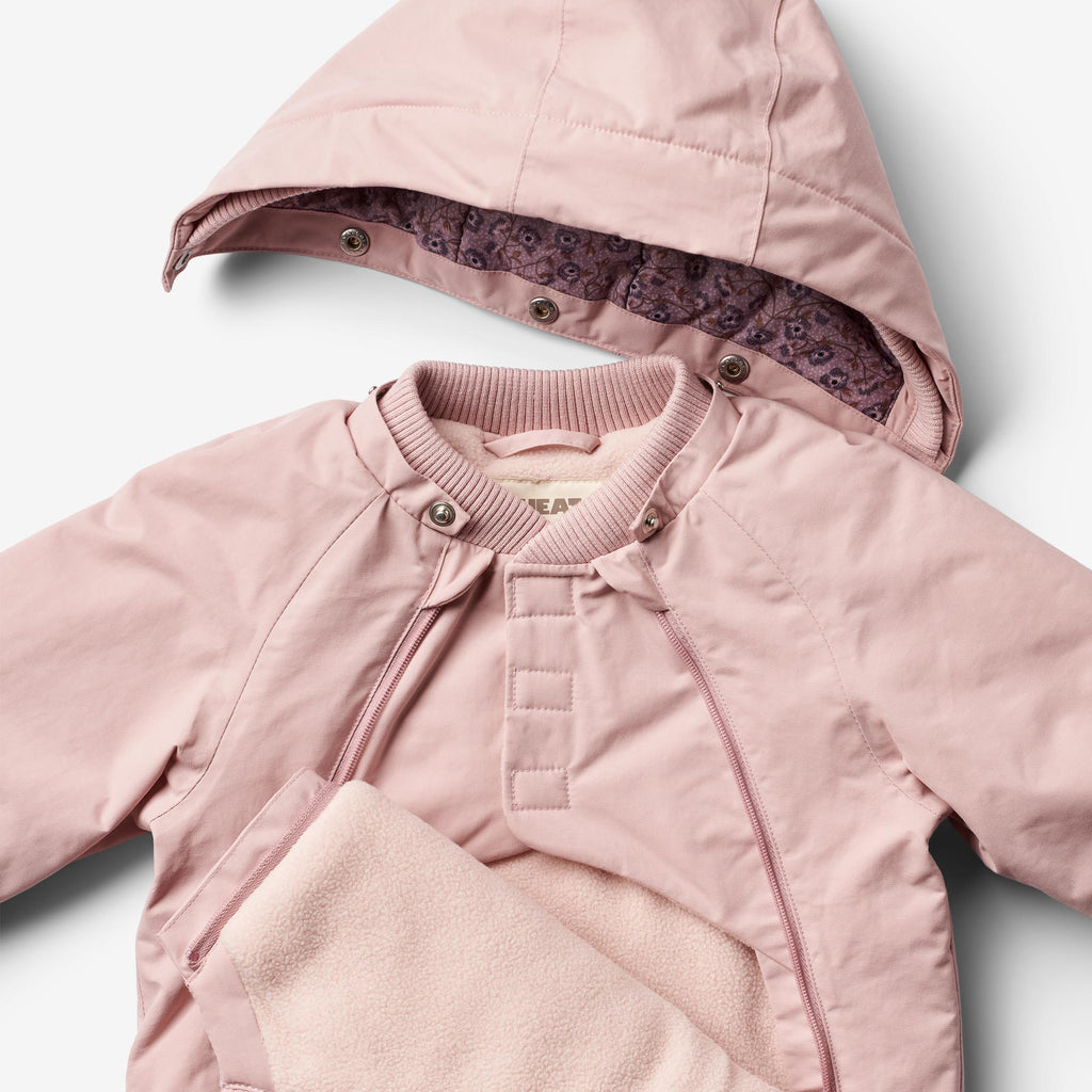 The technical jacket is intended as a winter jacket, as it has fleece lining and is made to keep your child warm all day long. The jacket has many practical details such as detachable and adjustable hood and double zippers down the front. The jacket can unzip and open completely, so it’s easy for your child to get in it. It is available in beautiful colours and hand drawn prints made by Wheat's in-house design team.