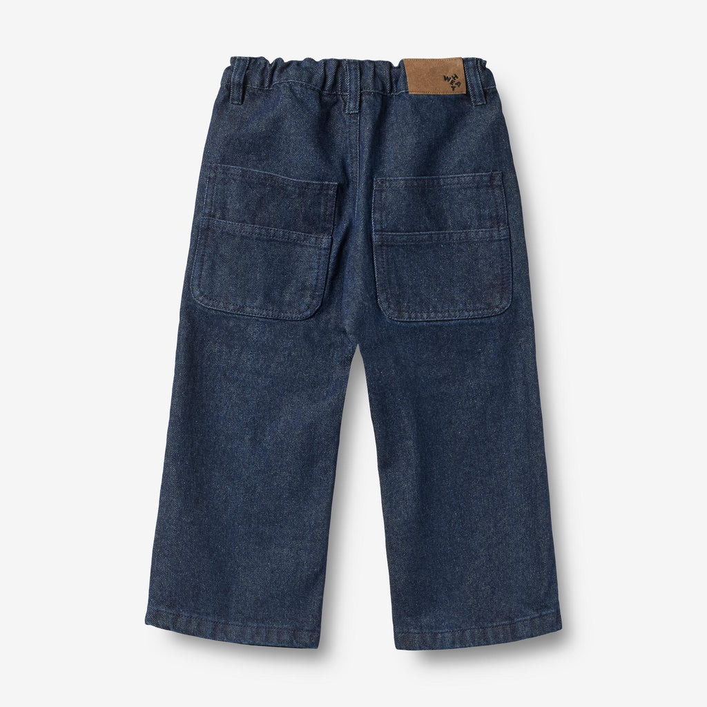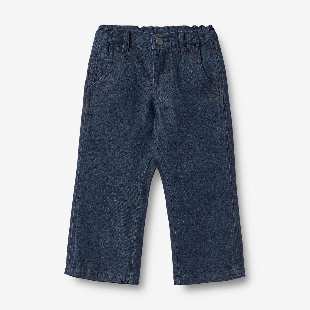 Denim pants in soft organic cotton for children. - Adjustable elastic at the waist- Side pockets- Welt pockets at the back- Fly with zipper and a buttonWheat's trousers are an essential part of your child’s daily wear with a practical elastic at the waist and side pockets. The relaxed fit makes the trousers comfortable for your child to wear and can easily be styled with one of our T-shirts, tops or knits for everyday life. They are also perfect for special occasions, where you can dress them up with a shirt or blouse to complete the fancy look.