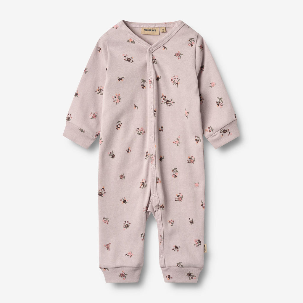 Long-sleeved sleepsuit with print in soft organic cotton for your baby. - Regular/Loose fit- Press buttons down the front and along the inseam- Hand drawn all-over printWheat's sleepsuit for babies is both cute and comfortable. The sleepsuit has press buttons at the shoulder or down the front and along the inseam of the legs, which makes it easier for you to dress your baby. The sleepsuit can be worn on its own as pajamas or as an extra layer underneath everyday clothing. Wheat's sleepsuits are available in beautiful colours and hand drawn prints, which are made by Wheat's in-house design team.