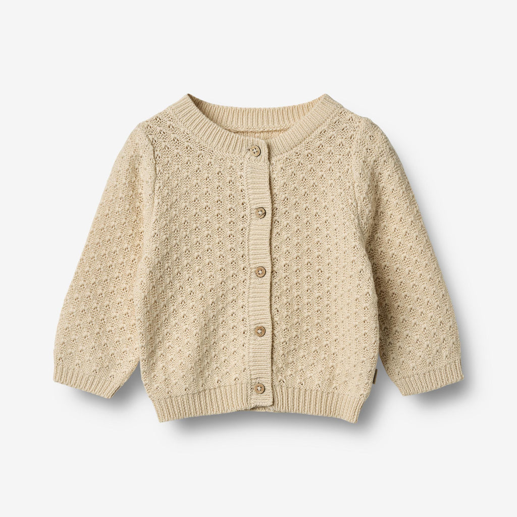 Long-sleeved knit cardigan in soft organic cotton for babies.- Buttons down the front- Rib at the neckline, cuffs and bottom hem- Structured knit patternThis soft and cozy knitwear piece is designed to keep your child warm and comfortable throughout the seasons. Made from high-quality materials, it offers a gentle stretch for easy movement while maintaining a timeless look.