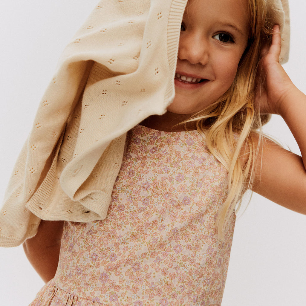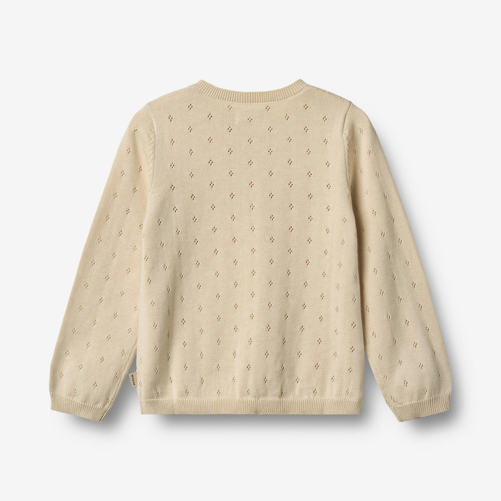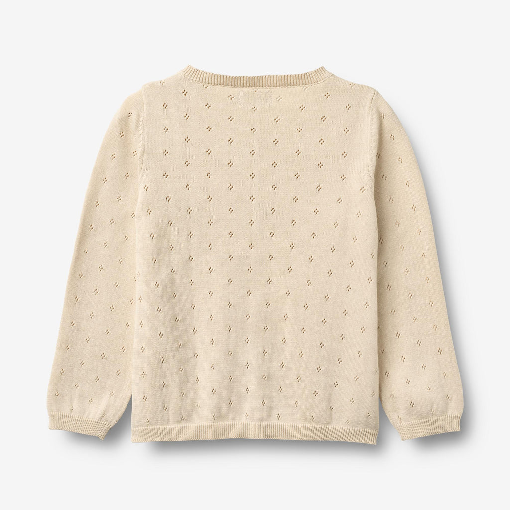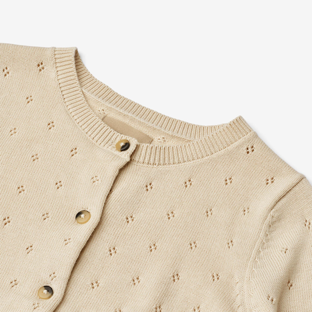 Bestseller Knit Cardigan Maia in organic cotton for your child.- Overlock stitching used in garment construction- Button closure- Available in sizes 3 years to 12 years- Unique knitted patternThe Knit Cardigan Maia is crafted from soft, organic cotton, making it a comfortable and versatile layering piece for any season. Its classic design and button-front closure make it easy to pair with a variety of outfits.Perfect for layering over a Wheat T-shirt or under a jacket on cooler days, this cardigan is a practical addition to your child's wardrobe. The bone button closure adds a touch of detail while ensuring a secure fit.