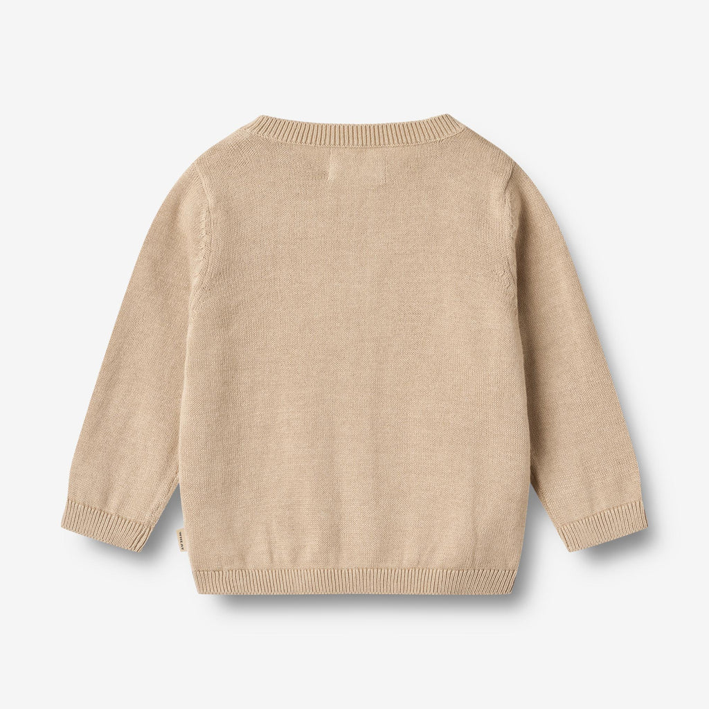 Long-sleeved knit cardigan in soft organic cotton for babies.- Rib at the neckline and hems- Buttons down the front- Purl knit details as stripes at the chestWheat's knitwear is a true essential during the everchanging seasons, as it is soft and comfortable for your baby to wear without any kind of itchiness. Our knits have a classic look with a relaxed fit that makes it easy to style with any outfit.