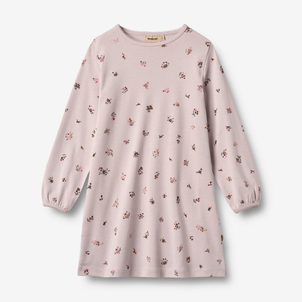 Comfy nightgown with print in soft organic cotton for children. - A-shaped- Small lace detail at the neckline- Wheat signature printWheat's sweet and soft nightgown is comfortable to wear and perfect for the cold autumn and winter nights. The nightgown has a comfy A-shape and a beautiful hand drawn print made by Wheat's in-house design team.