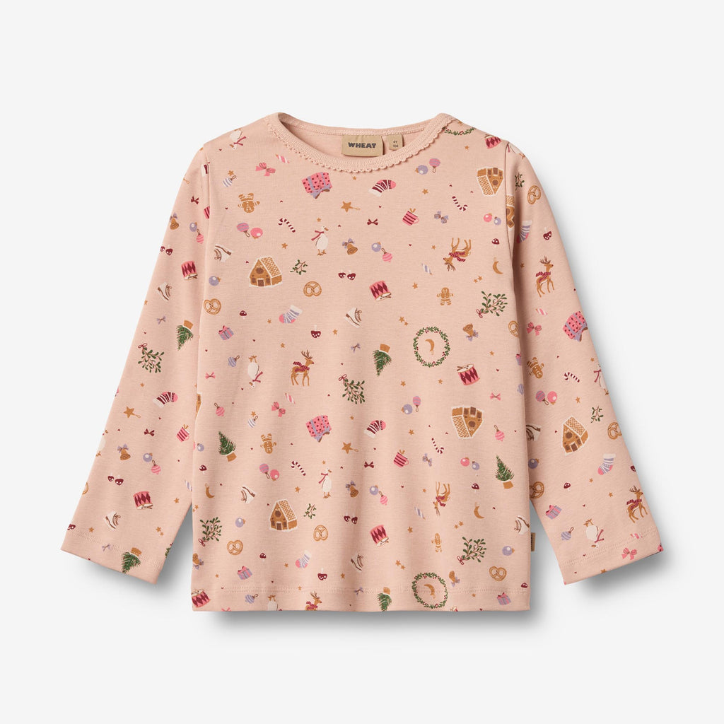 Comfy pajamas with Christmas print in soft organic cotton for children.- Long-sleeved T-shirt with picoting details at neckline- Pants: Soft elastic at the waist - Wheat signature printWheat's sweet and soft nightwear is comfortable to wear and perfect for the cold autumn and winter nights. The pajamas set comes with matching T-shirt and pants and has a beautiful hand drawn print made by Wheat's in-house design team.