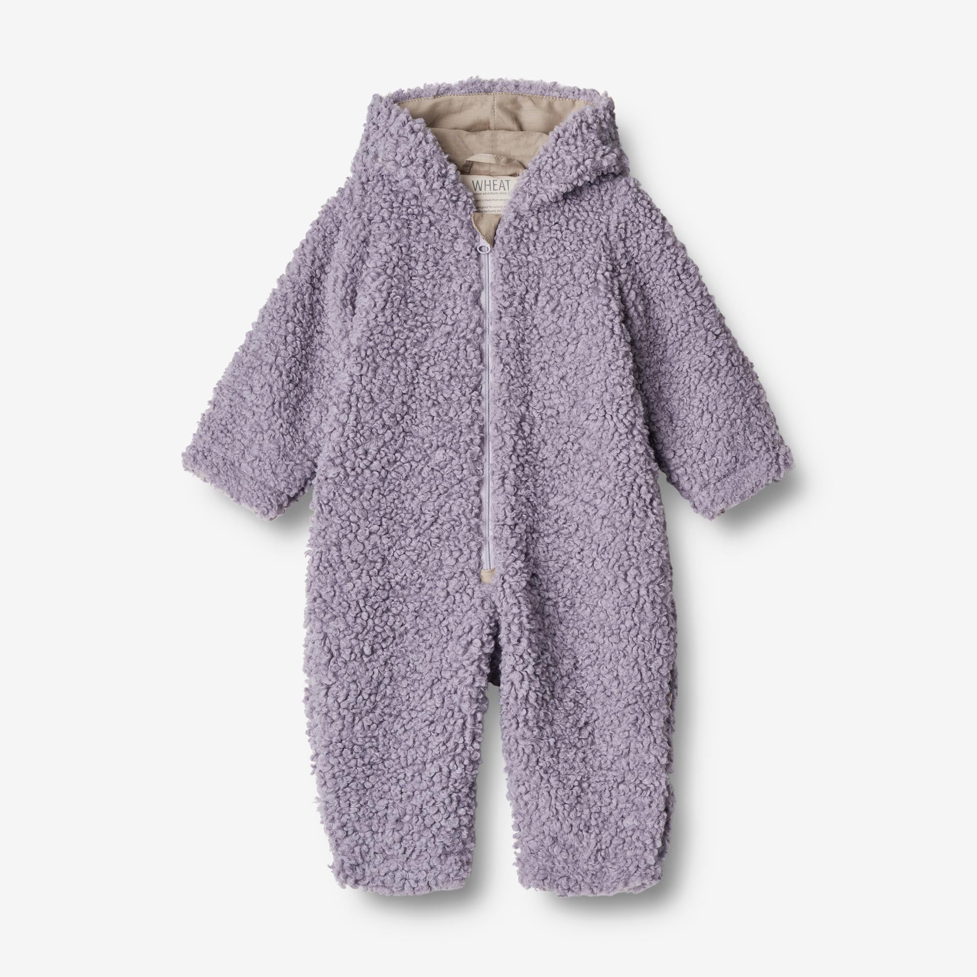 Wheat’s pile suit is made in a soft and lightweight recycled material that is comfortable for your child to move and play in. As a cozy detail, the suit has soft cuffs at the hands and feet that can be folded to keep your child warm and snug. The suit can be used as a cozy layer indoor or as transitional outerwear. It is perfect for nursery or for walks in the pram when your child needs some lighter outerwear.