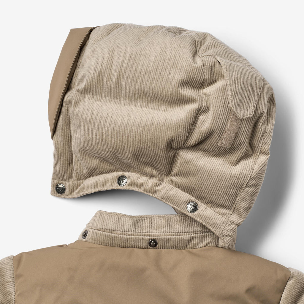 Puffer jacket in soft corduroy for children. - Regular fit - Detachable and adjustable hood- Storm cuffs inside sleeve with thumbhole- Placket with hidden zipper down the front and velcro closure- Slanted welt pockets with pocket flaps and velcro- Reflective detailsWheat's puffer jacket with technical padding is perfect for the many cold autumn and winter days. It is designed with high durability and comfort in mind. nb. Please note that the puffer styles do not have taped seams and are therefore not waterproof.
