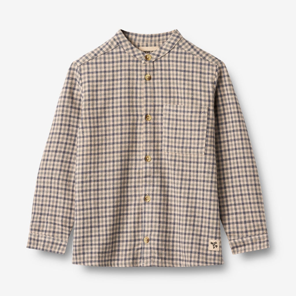 Long-sleeved checked shirt in soft organic cotton for children. - Regular fit- Mandarin collar- Buttons down the front- Checked flannel fabricThis shirts are unisex and are perfect for the many special occasions and cozy days during the autumn and winter seasons. The shirt gives the outfit a more classic look and you can easily style it with a pair of trousers and a knit to complete the look. You can also roll the sleeves up for a more casual everyday look.