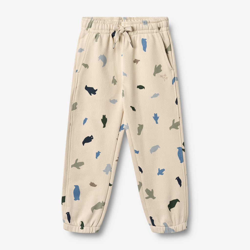 Loose-fitted sweatpants with cool print in soft organic cotton for children.- Regular/loose fit- Cotton shoelace string at the waist- Elastic inside waistband and leg hems- Side pockets- Wheat signature printWheat’s soft sweatpants are unisex and are comfortable for your child to wear as both loungewear and for everyday activities. They have a cotton shoelace string at the waist and side pockets. The sweatpants have a loose and relaxed fit, which gives them a cool oversized look.
