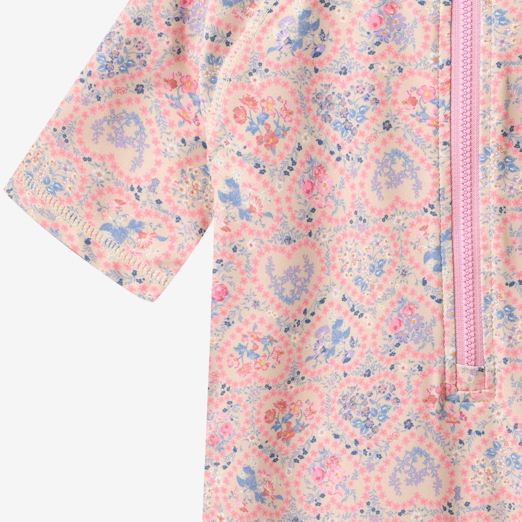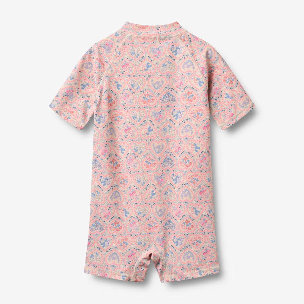 The swimsuit is fitted and has a small collar to protect the neck from the sun and raglan sleeves. It has a zipper at the front to make it easier for your child to get dressed. The style is with UV 40+/UPF 40+ protection. The swimsuit can easily be styled with one of our lightweight dresses or shirts to complete the cute summer look.