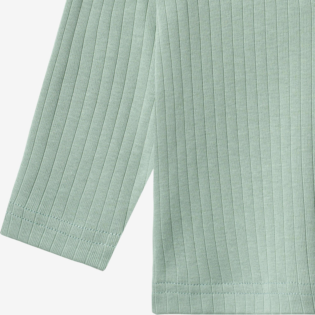 Long-sleeved rib t-shirt in soft organic cotton for babies. - Regular fit- Placket at the front with buttons- Dropped shoulders- Long sleeves- Ribbed structureThis classic rib T-shirt is made from soft organic cotton, ensuring a comfortable and breathable fit for everyday wear. Designed with a timeless look and a gentle stretch, it allows for easy movement, making it a versatile staple in your child’s wardrobe. Perfect for layering or wearing on its own, this T-shirt is ideal for any season.