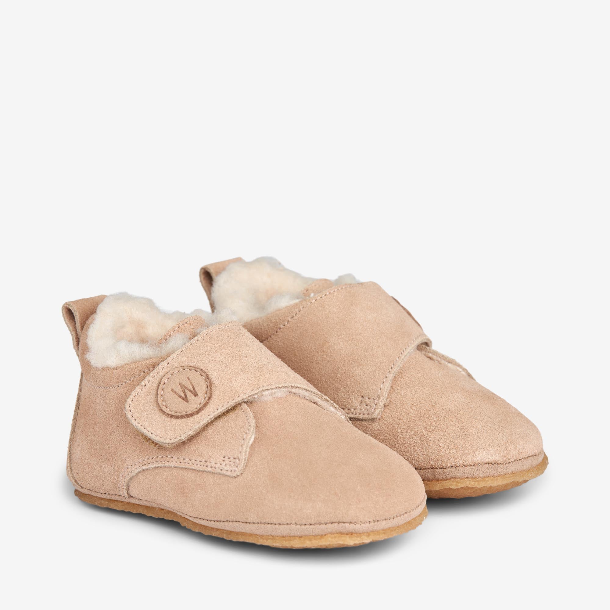 Warm and cozy slippers with velcro closure and wool lining for your baby.