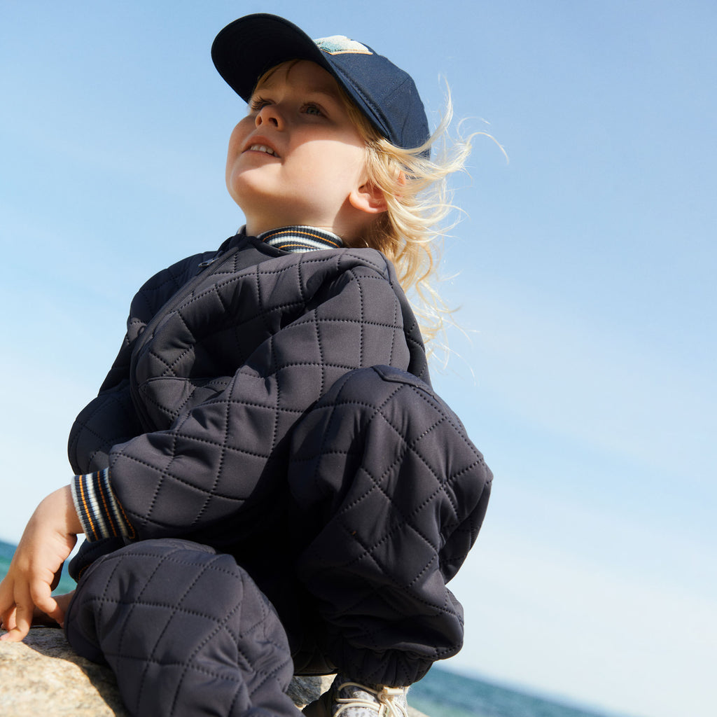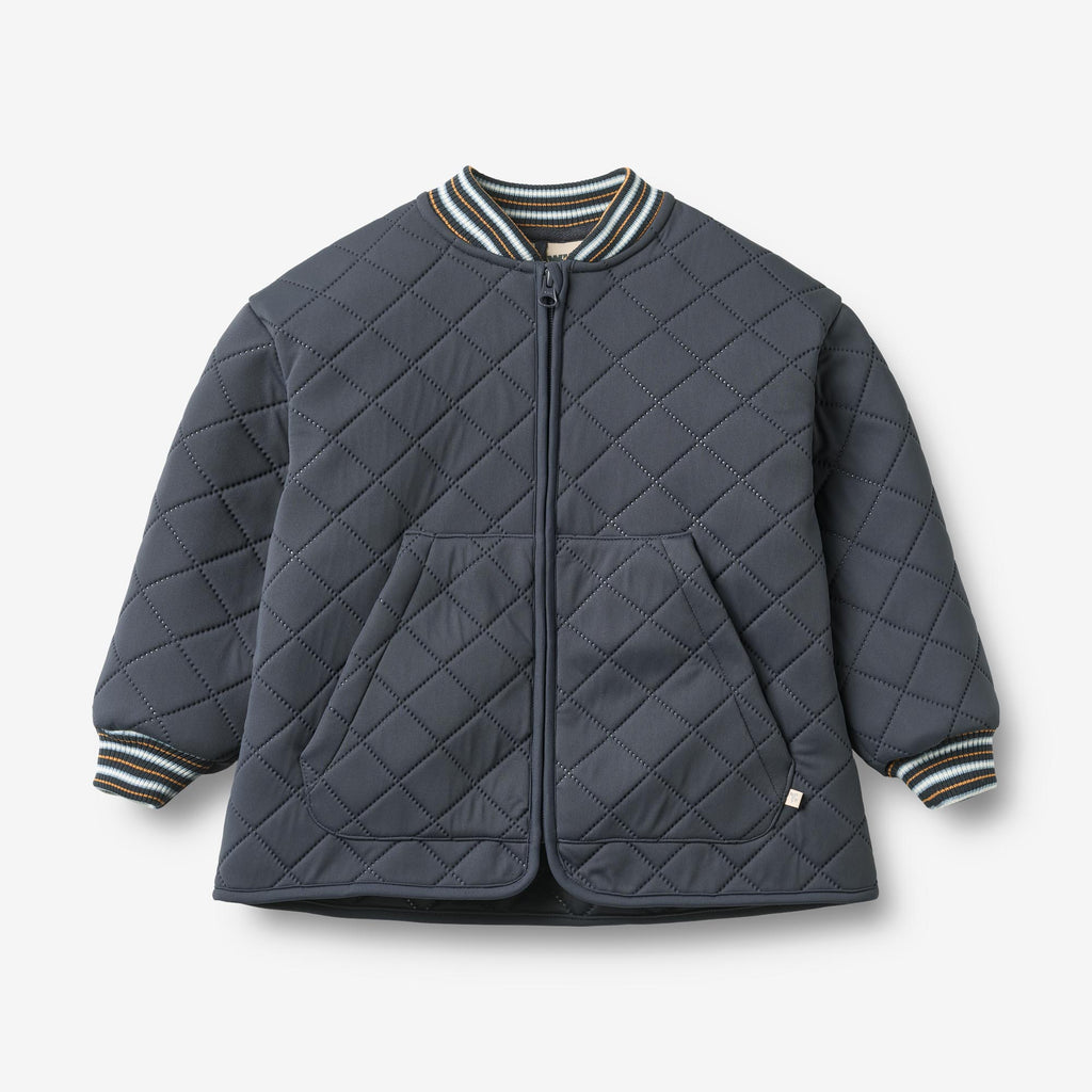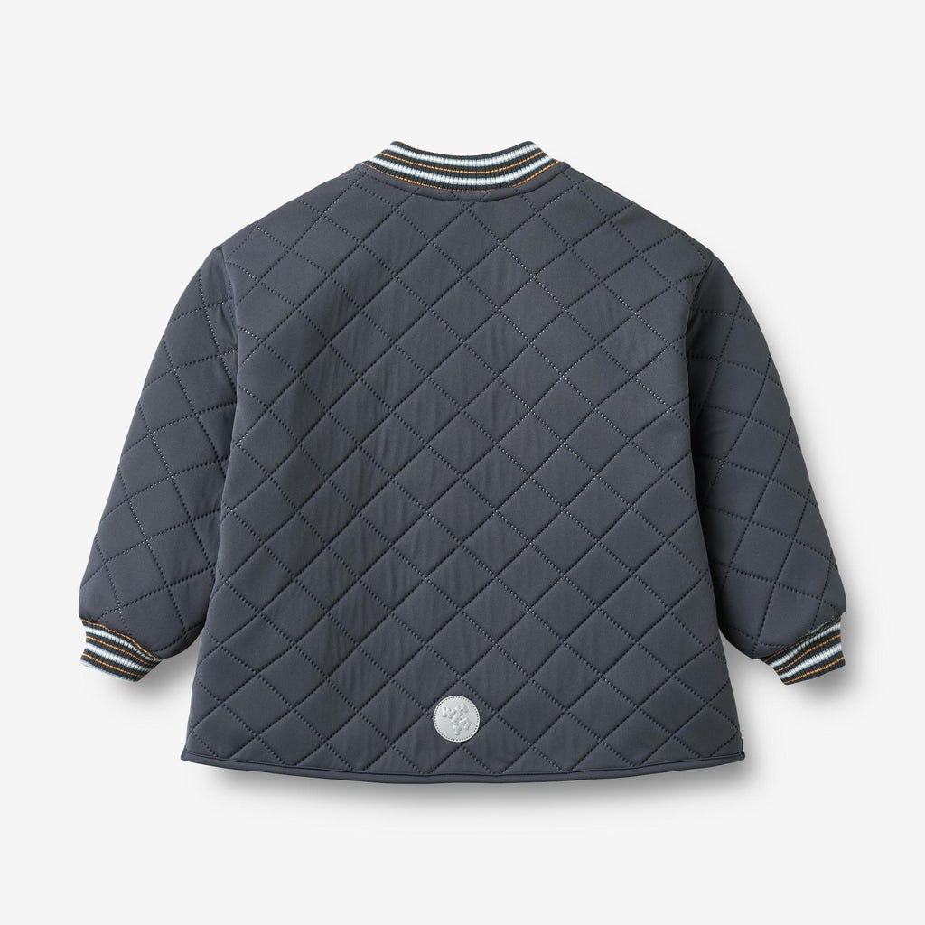 Wheat's thermo jacket is a versatile option for transitional weather or as an added layer during colder months. The quilted construction provides light insulation without bulk, allowing for comfortable movement and play. This jacket is designed to be easily worn over other garments, both indoor and outdoor.