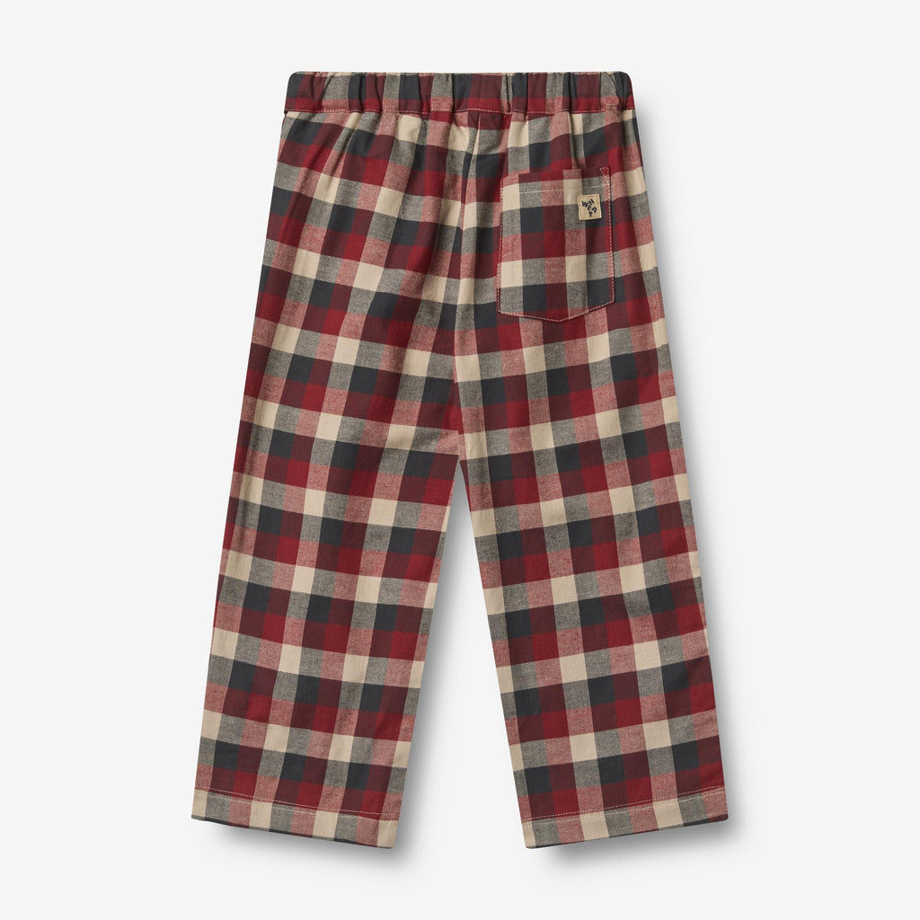Loose-fitted trousers with check in soft woven organic cotton for children. - Loose fit- Side pockets- Adjustable elastic inside waistband- CheckedWheat's trousers are an essential part of your child’s daily wear with a practical elastic at the waist and side pockets. The relaxed fit makes the trousers comfortable for your child to wear and can easily be styled with one of our T-shirt, tops or knits for everyday life.