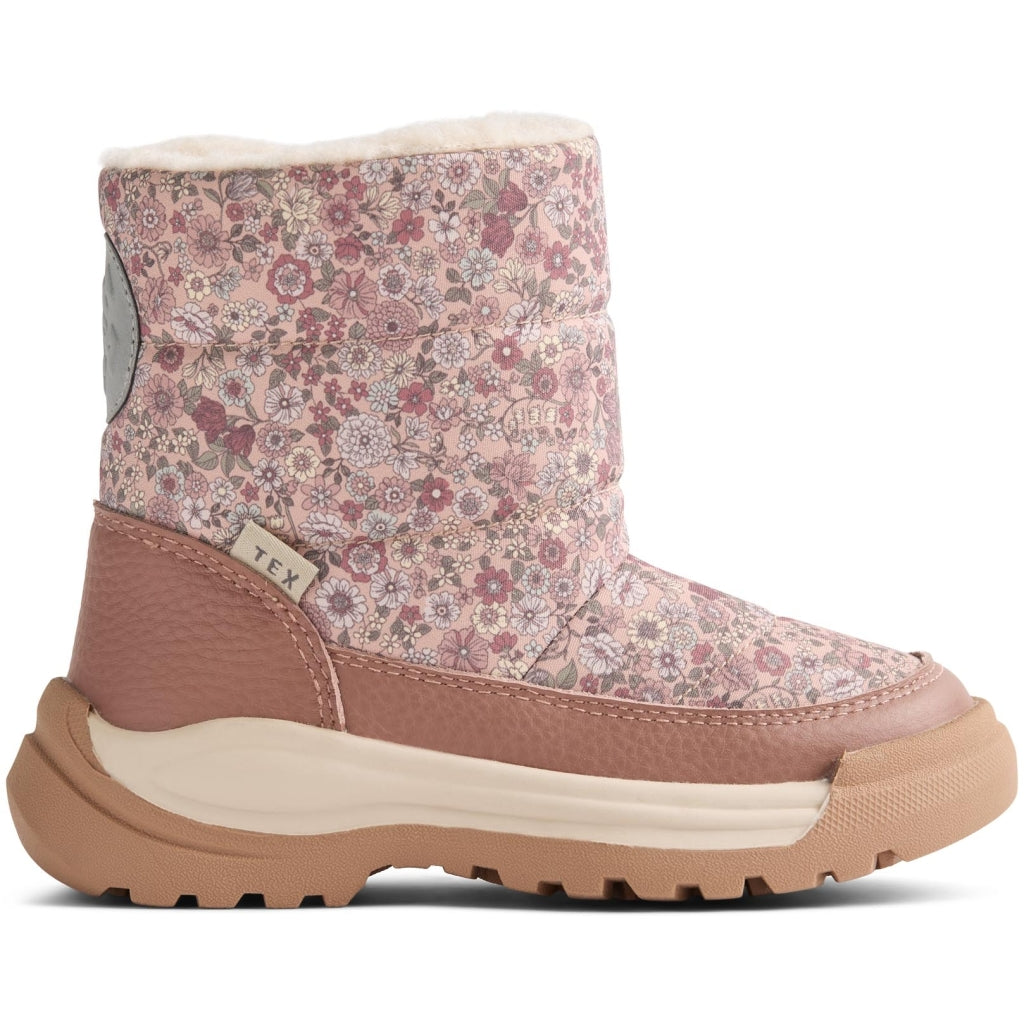 Comfy printed winter boots with high shaft and velcro closure for your child.- Wool lining- Tex membrane- High shaft- Wide velcro closure- Reflective logo on the back- Wheat signature printWheat’s winterboots are lightweight, flexible and comfortable for your child to wear. This boot has a high shaft and a large velcro opening on the inside to offer an easy instep. The boots are designed with a Tex membrane that is 100% breathable and waterproof, providing excellent protection for your child’s feet during the autumn and winter months. Prolonged exposure to very wet conditions may eventually allow moisture to seep through. For extended time in very wet environments, our winter rubber boots are recommended. They run normal in sizes and have a firm grip on your child's feet. Recommended allowance for growth: 1-1,5 cm Inner measurement:Size 24 = 16,1 cmSize 25 = 16,8 cmSize 26 = 17,4 cmSize 27 = 18,1 cmSize 28 = 18,7 cmSize 29 = 19,4 cmSize 30 = 20,1 cmSize 31 = 20,7 cmSize 32 = 21,4 cmSize 33 = 22 cmSize 34 = 22,7 cmSize 35 = 23,4 cm