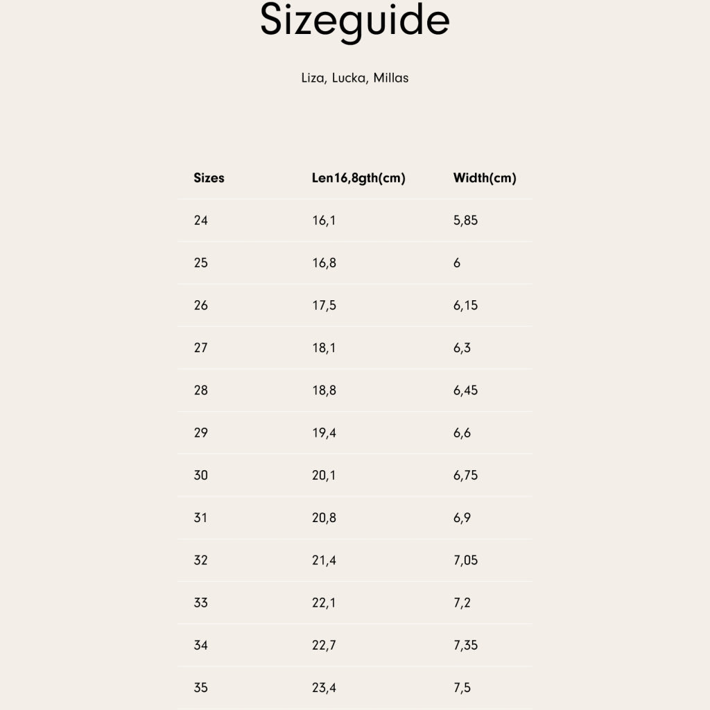 3. Find the shoes that fit your childOnce you have collected measurements for both your child's foot length and growth allowance, you can now see which size fits your child best. Under our products you can easily see what the inside measurements are for the different sizes.