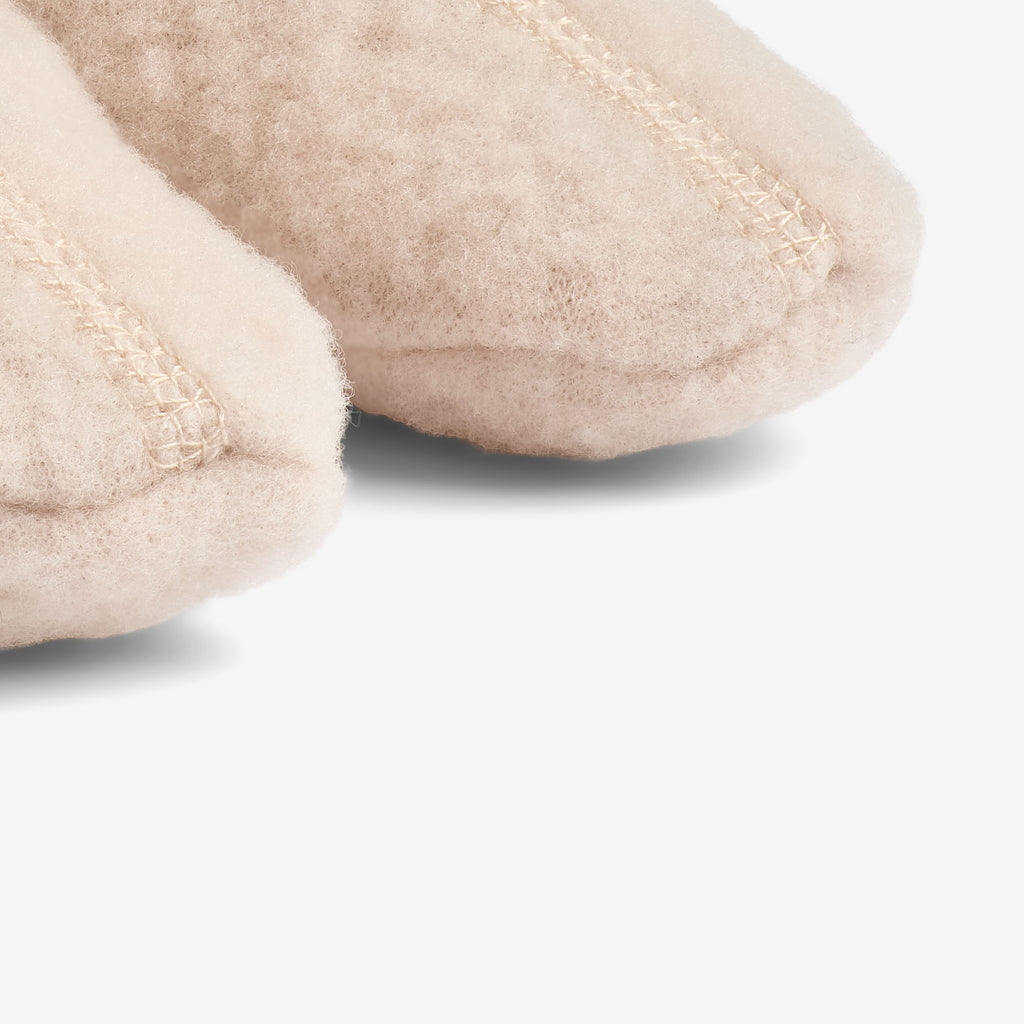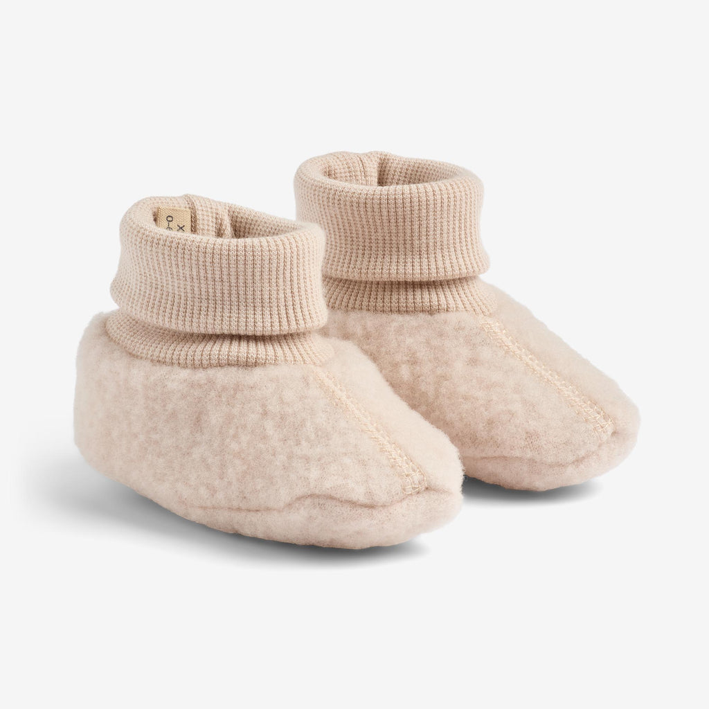 Lovely booties in soft felted merino wool for your baby. - Soft rib at the ankles Wheat’s wool wear is specially designed to keep your child warm in the cold weather, while still keeping them from overheating, as wool has the unique quality that it helps regulate body temperature. The wool styles are great for layering and soft on bare skin.Wheat’s booties are an essential for your baby in the cold autumn and winter months, when you are going for a walk, or they are sleeping in the stroller. They are both cute and practical with soft rib around the ankles that keeps the cold out.